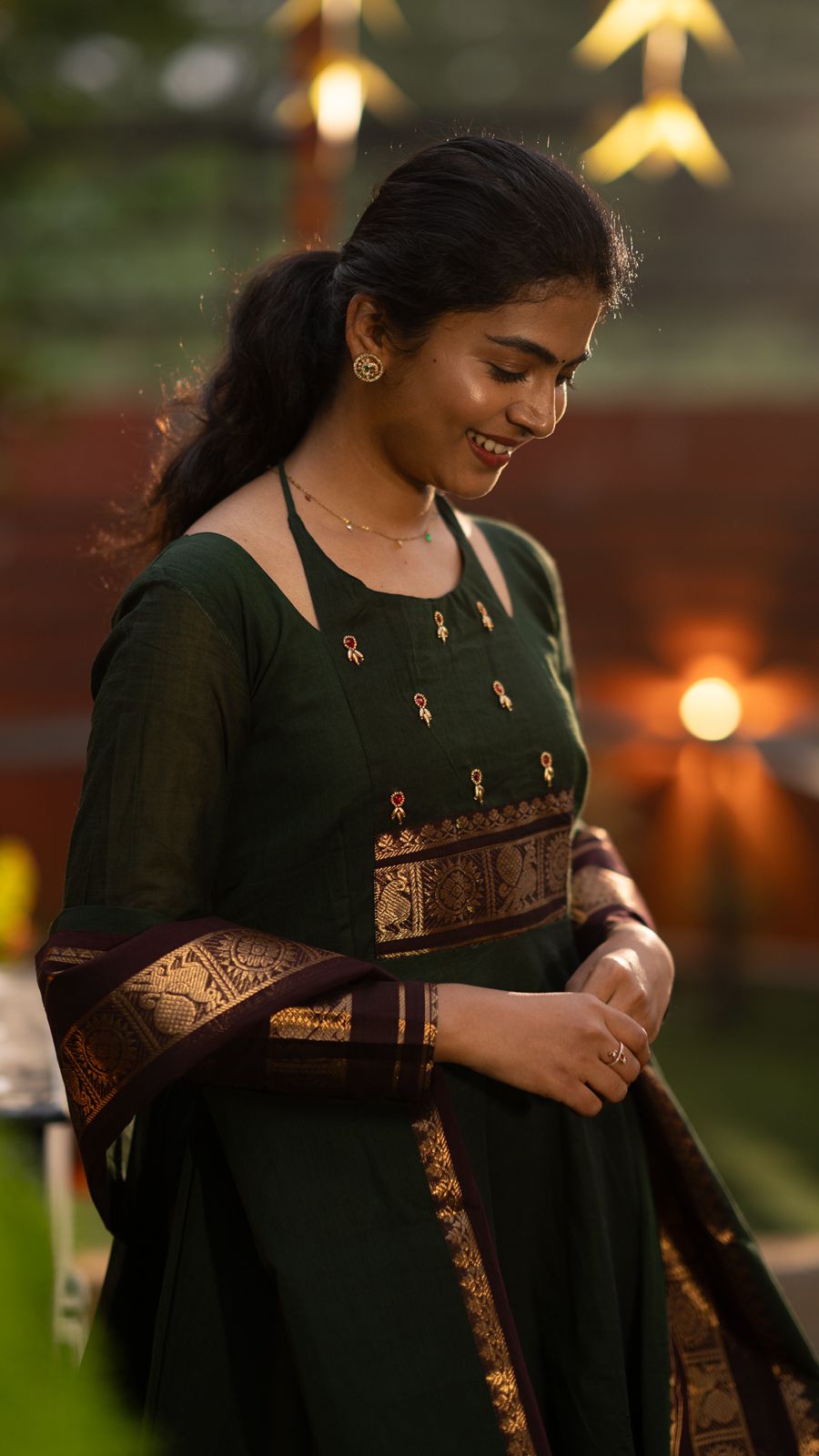Embrace freshness and elegance with our Green Anarkali, designed to bring out a graceful ethnic charm. Crafted with quality fabric and a beautifully flowing silhouette, this Anarkali offers both comfort and timeless style.