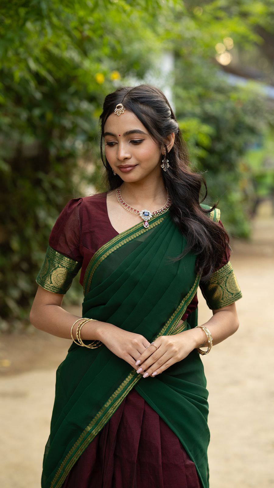 Style it with temple jewellery and fresh flowers for a truly traditional look 🌿🌸