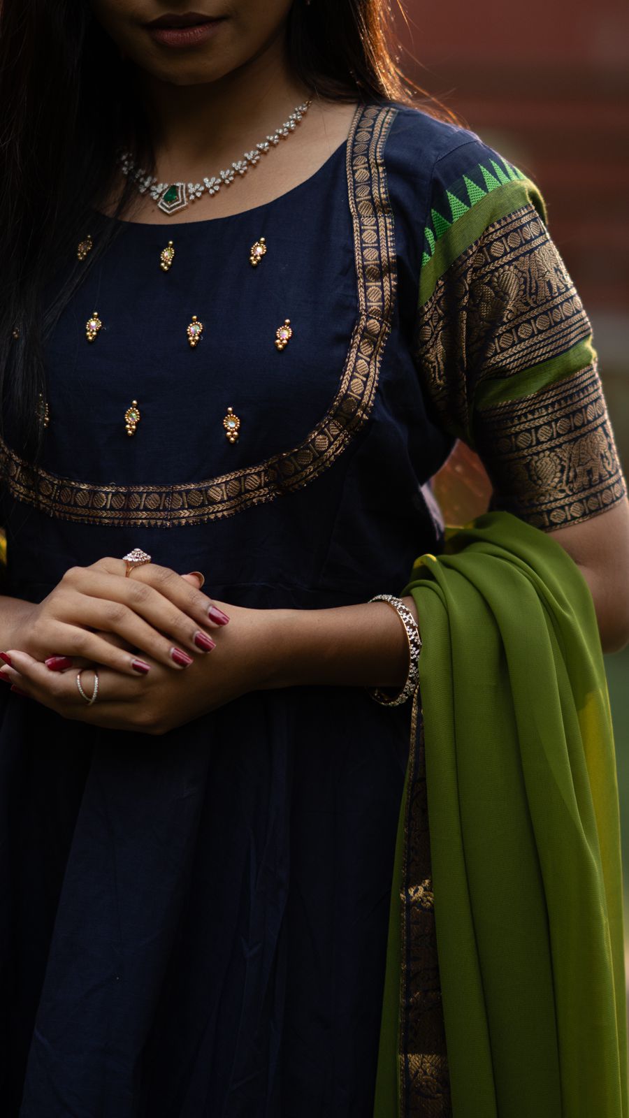 Style it with silver, pearl, or antique jewellery for a stunning royal finish ✨