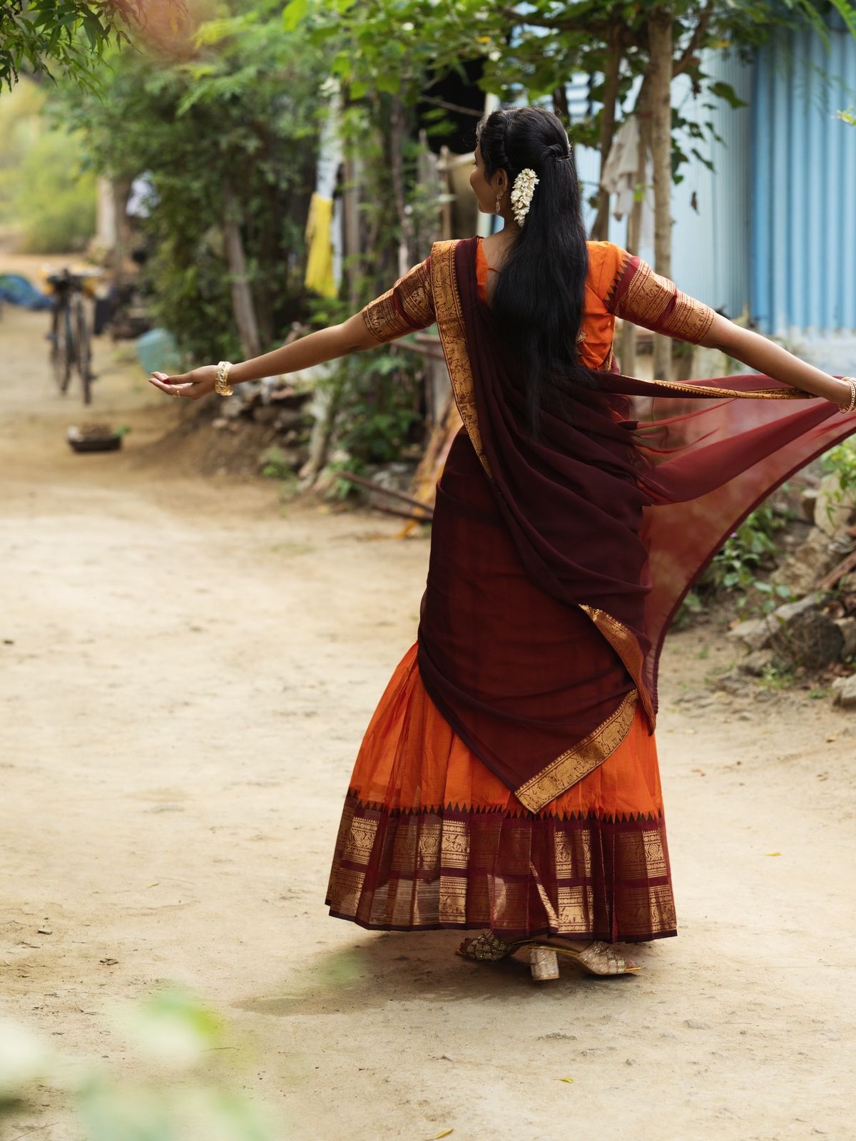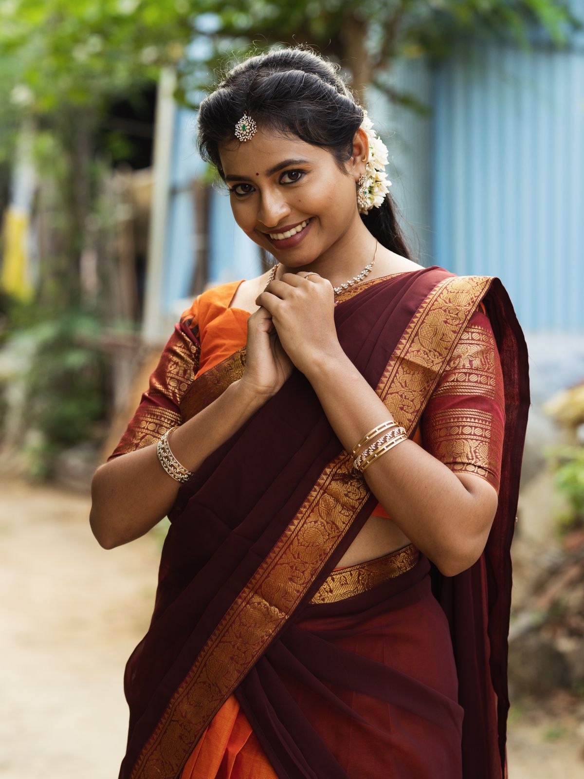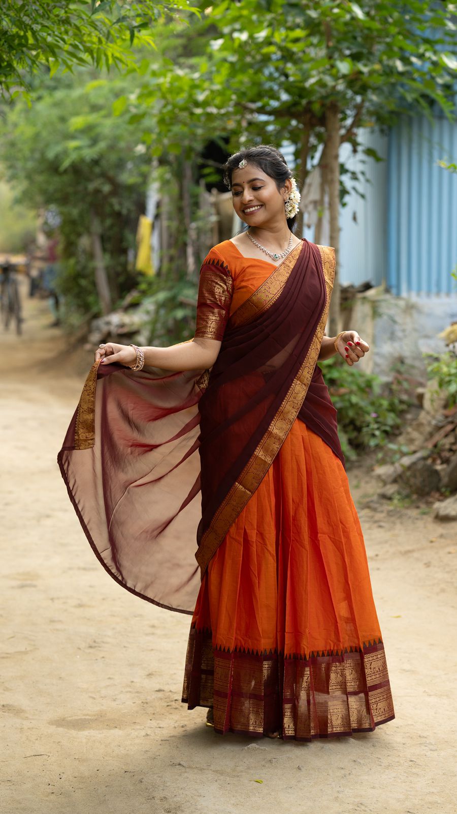 Style it with temple jewellery and jasmine flowers for a stunning traditional look 🌺